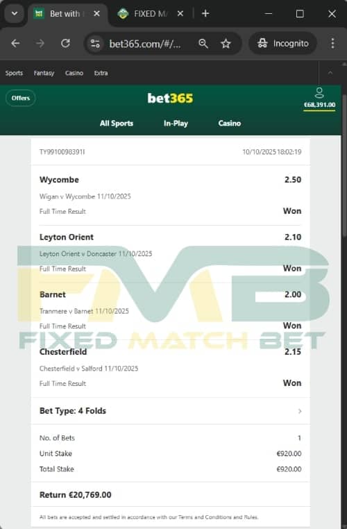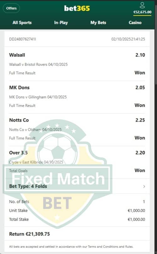 You want to see our offer with this VIP Ticket 4 Combo Fixed Matches? The offer is on this link.