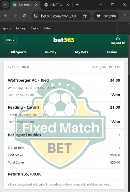 Premium Offer, make money on our way with HT/FT Fixed Matches!